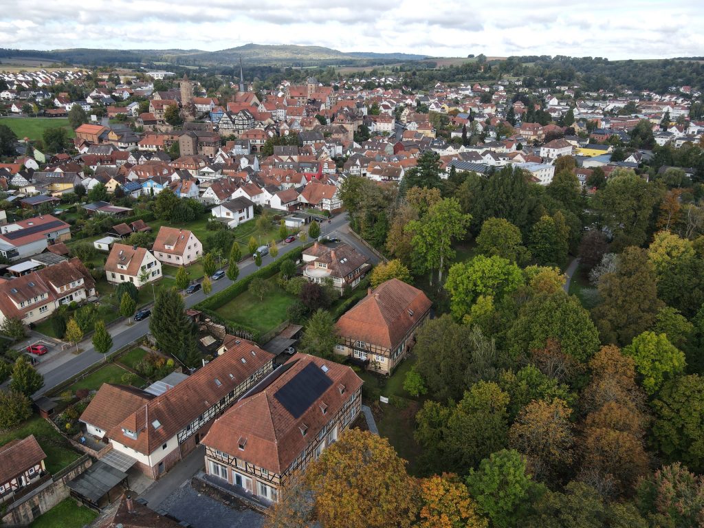 wir befinden uns heute im Juni 2023 und diese alte Scheune wird zurzeit in ein Mehrparteien-Mietshaus umgebaut. Ursprünglich (erbaut ca. 1710) war dies hier (zusammen mit dem baugleichen Gebäude nebenan) die Scheune des Grafenhauses von Schlitz. Seit vielen Jahrzehnten wurde sie nun als Lagerraum von vielen Menschen genutzt und innen entsprechend im unteren Teil unterteilt. Im Dezember 2020 haben wir sie gekauft, um sie wieder mit Leben zu füllen und zu erhalten.