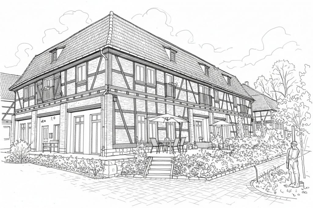Wir möchten in Zeiten, in denen solide und altersgerechte Mietwohnungen hier rar sind, einige wertige Möglichkeiten des Wohnens schaffen. Uns ist vor allem auch ein gutes Miteinander der Bewohner ein Anliegen, weshalb auch eine Alters-Wohngemeinschaft für drei alleinstehende Personen im Obergeschoss vorgesehen ist. Besonders, da in der heutigen Zeit viele Menschen sich nach sozialen Kontakten sehnen, weil die eigene Familie nicht mehr existiert oder zerbrochen ist.