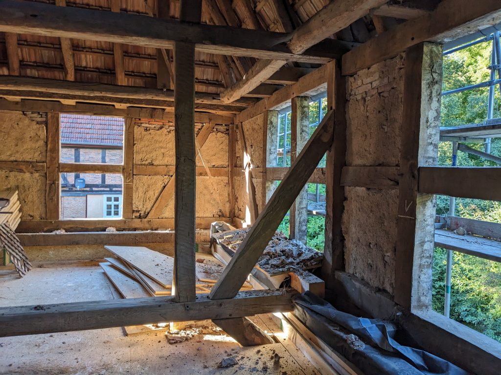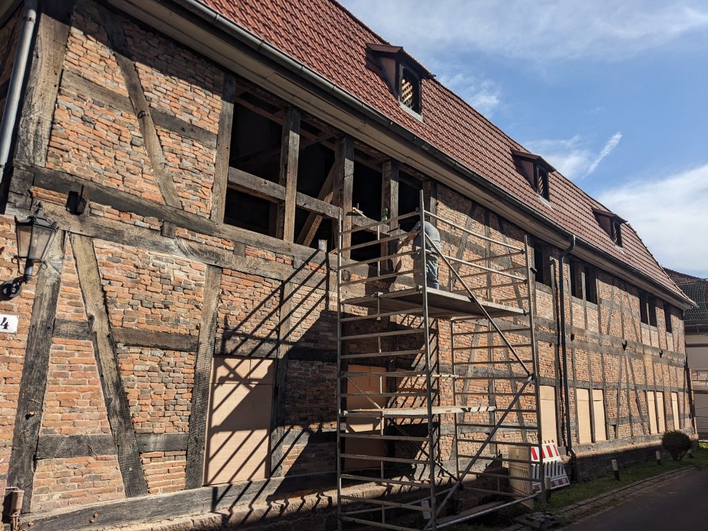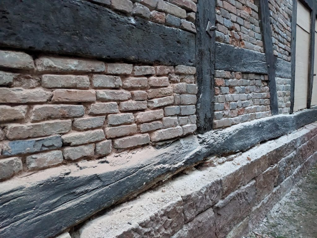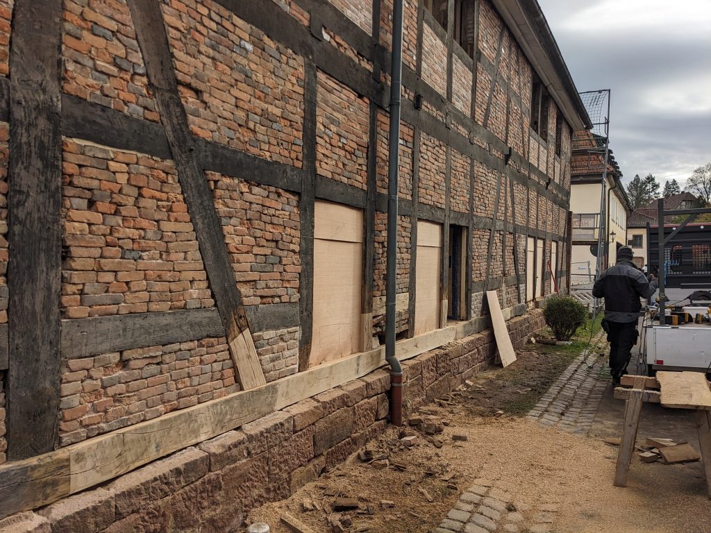 Aufwendige Instandsetzung des beschädigtes Fachwerks und der Ziegelgefache