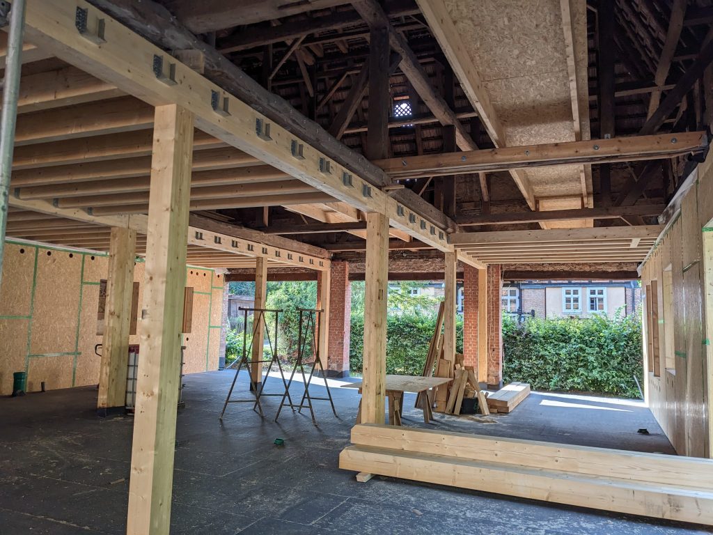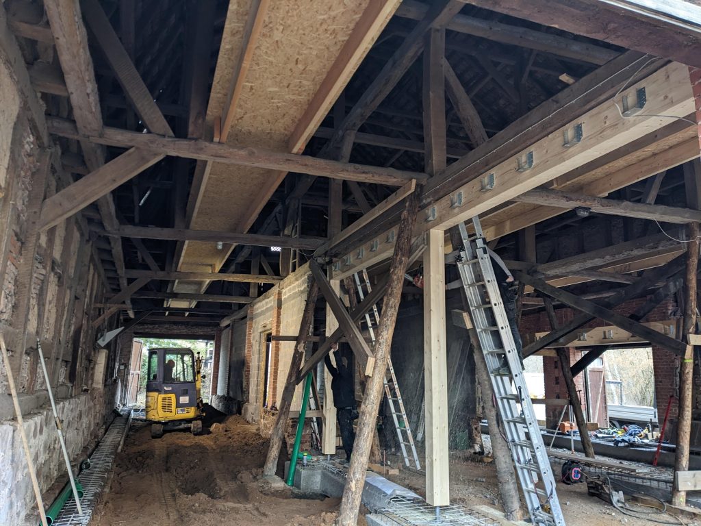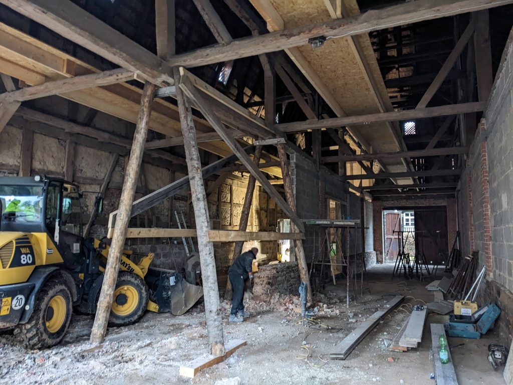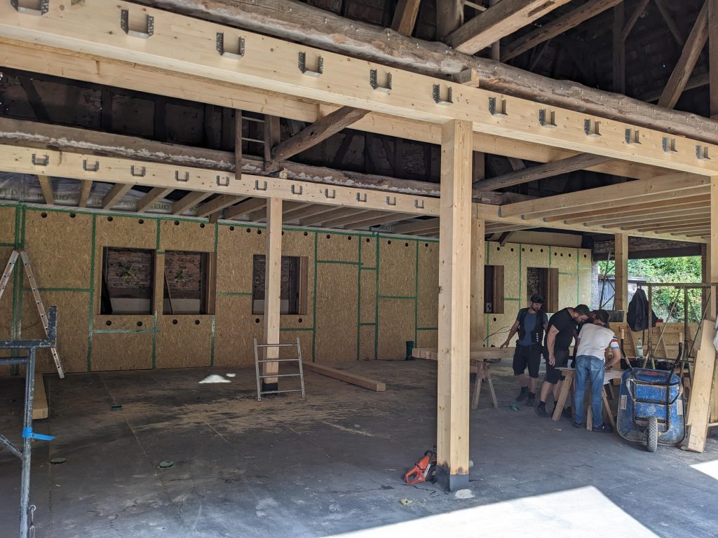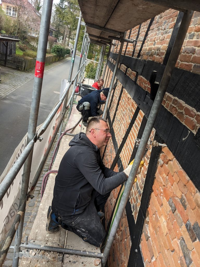 Aufwendige Instandsetzung des beschädigtes Fachwerks und der Ziegelgefache