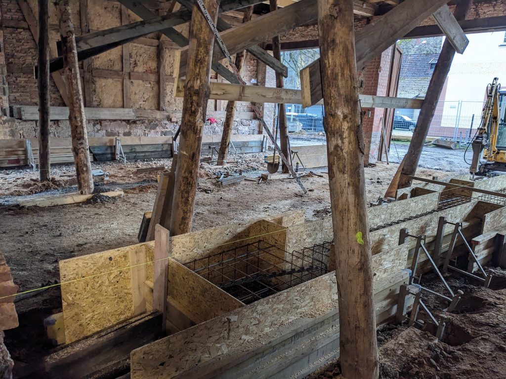 Durch die erheblichen Lasten gleichzeitiges Erstellen neuer Fundamente, der Bodenplatte und des kompletten Tragwerks im Erdgeschoss. Dauer: 5 Monate