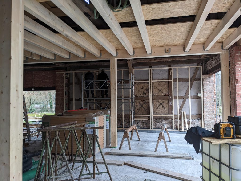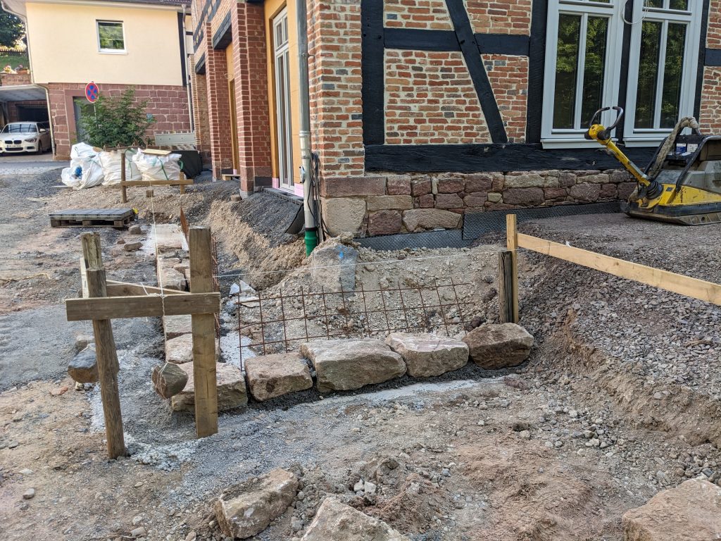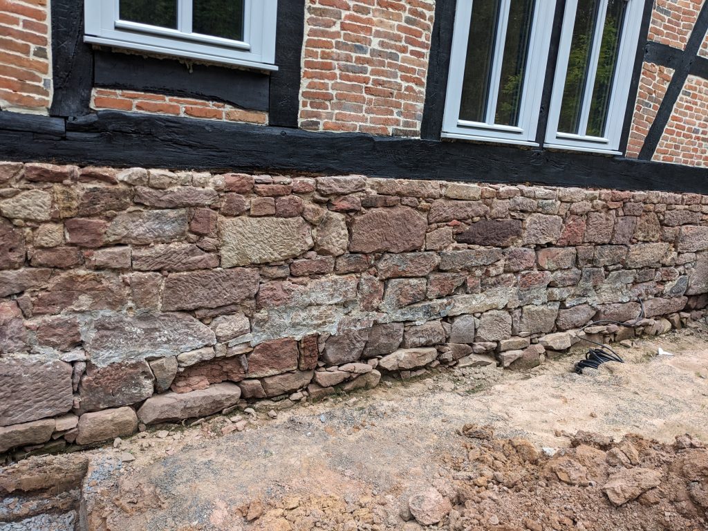 Anschließend wieder Ausmauern im Fensterbereich und Reparatur beschädigter Fachwerkgefache
