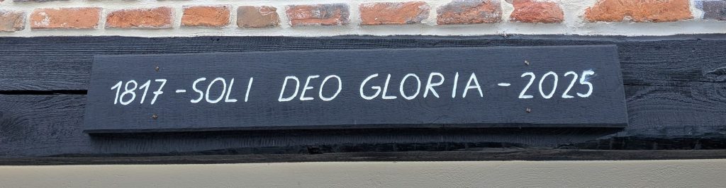 Über den Haustüren der Grafenscheune findet sich die lateinische Inschrift „1817 – Soli Deo Gloria – 2025“ (Gott allein die Ehre). Diese Worte tragen für uns mehrere, sich miteinander verbindende Bedeutungen.