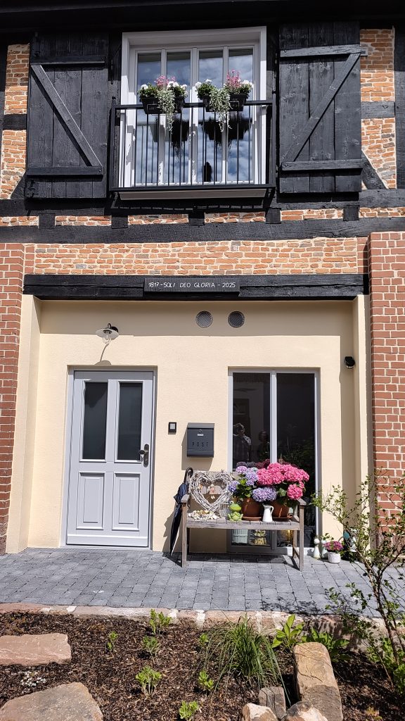So steht die Inschrift über der Haustür als sichtbares Zeichen dieser Haltung – als Bekenntnis zu unserem Glauben, als Ausdruck von Demut und als Einladung, diesen besonderen Ort bewusst wahrzunehmen.